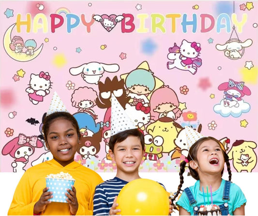 • Kuromi Birthday Backdrop, Purple Halloween Theme (5x3 Foot Size) Fast Shipping Available
